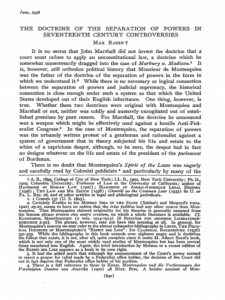 In this session i have tried discussing the topic the doctrine of law comprehensively including to the extent of doctrine of checks and balance. The revolutionary potentialities of the doctrine of the separation of powers in the hands of the opponents of aristocratic privilege and monarchical power were fully realized in america and france, and its viability as a theory of government was tested in those countries in a way which all too clearly. The separation of powers doctrine the separation of powers doctrine can be traced as far back as ancient greece and essentially the meaning attributed to it is the dividing functions of government between groups with different interests, so that no power in the centre can act without the cooperation. Its origin is traceable to plato and aristotle. This is why governments are founded, according to the declaration of independence. Separation of powers is a division of powers between the branches of government. In the 16th and 17th centuries, french philosopher john bodin and british politician locke expressed their views about the theory. The doctrine of separations of powers may be traced back to an earlier theory known as the theory of mixed government from which it has been. Awareness of these perplexing aspects of the separation of powers doctrine dates back at least to. Its existence is in a very general aspect. The separation of power is a method of removing the amount of power in any groups hands, making it more difficult to abuse. With the checks and balances created by the separation of powers, each of the three branches of government can limit the powers of the others. The doctrine of separation of power is the forerunner to all the constitutions of the world which came into existence since the days of the magna carta.